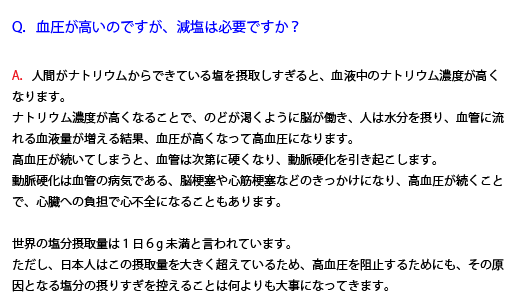 4. Q.血圧が高いのですが、減塩は必要ですか?