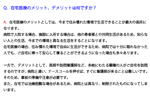 Q.在宅医療のメリット、デメリットは何ですか? 2020.12.07 在宅医療 Tweet Share Hatena Pocket RSS feedly Pin it この記事のタイトルとURLをコピーする