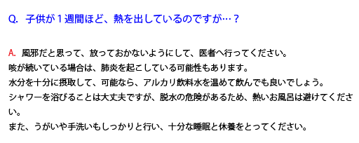 Q.子供が1週間ほど、熱を出しているのですが…? 2020.12.14 小児科 Tweet Share Hatena Pocket RSS feedly Pin it この記事のタイトルとURLをコピーする